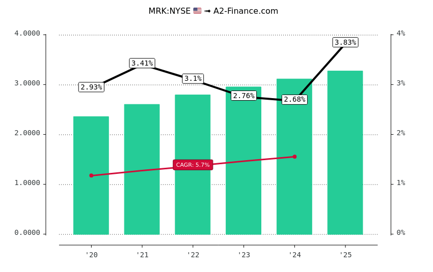 Looking at this fiscal year MRK expects solid earnings growth. Merck raises dividend 11 to 061 quarterly. With a five-year dividend growth rate of 63 which comes on top of the stocks yield of 34 the stock offers an appealing combination of growth and yield.